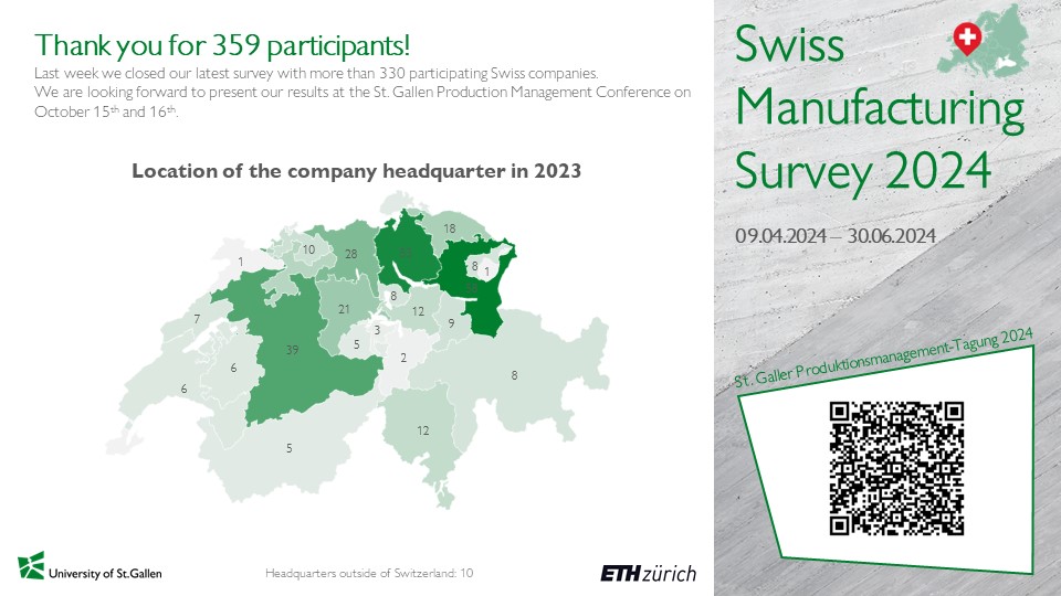 We would like to thank over 350 participants! We are now evaluating the results of the survey and identifying the candidates for the Swiss Manufacturing Award. Stay tuned!